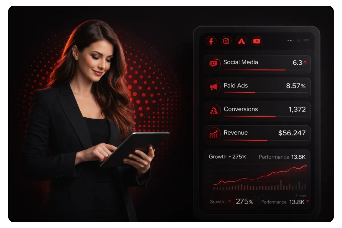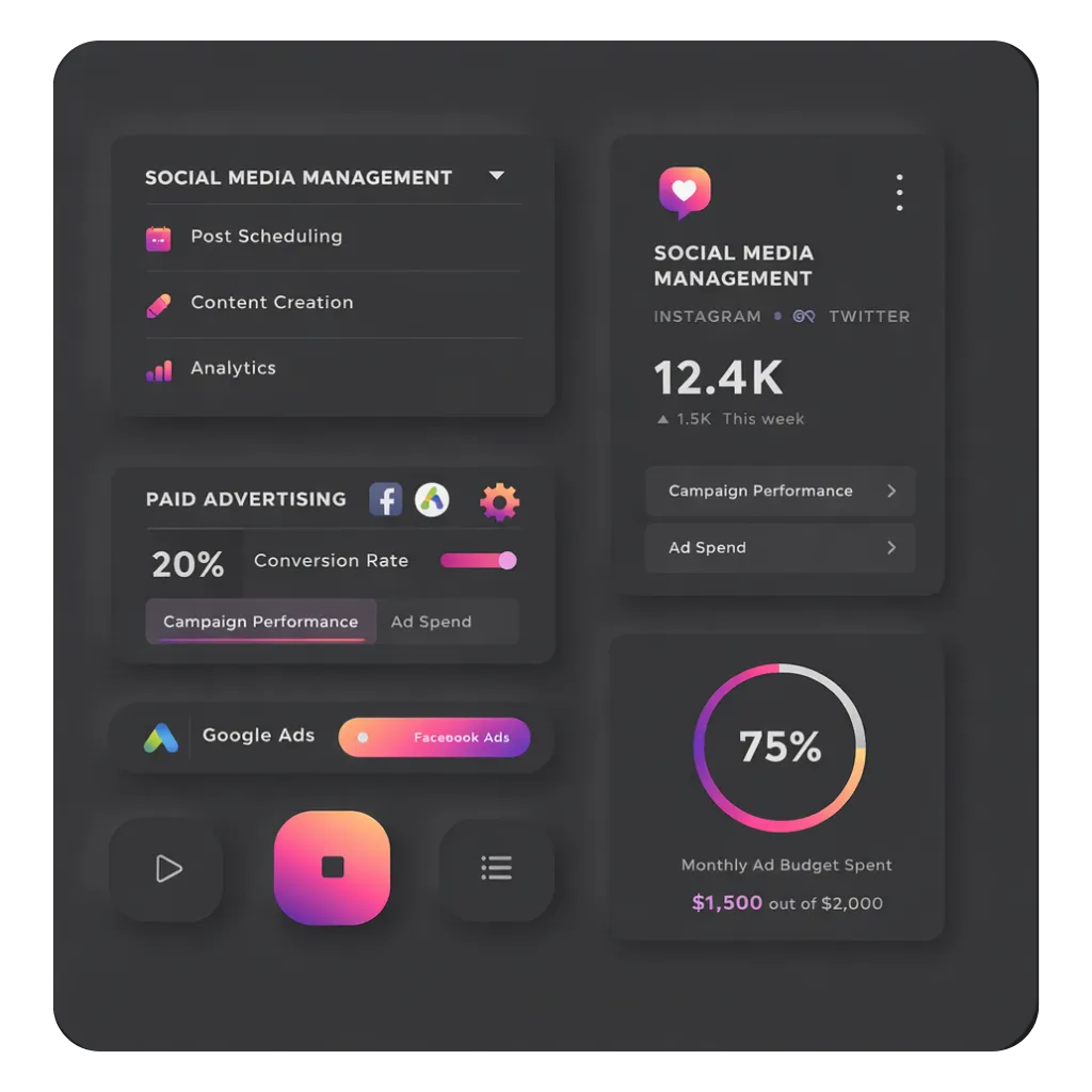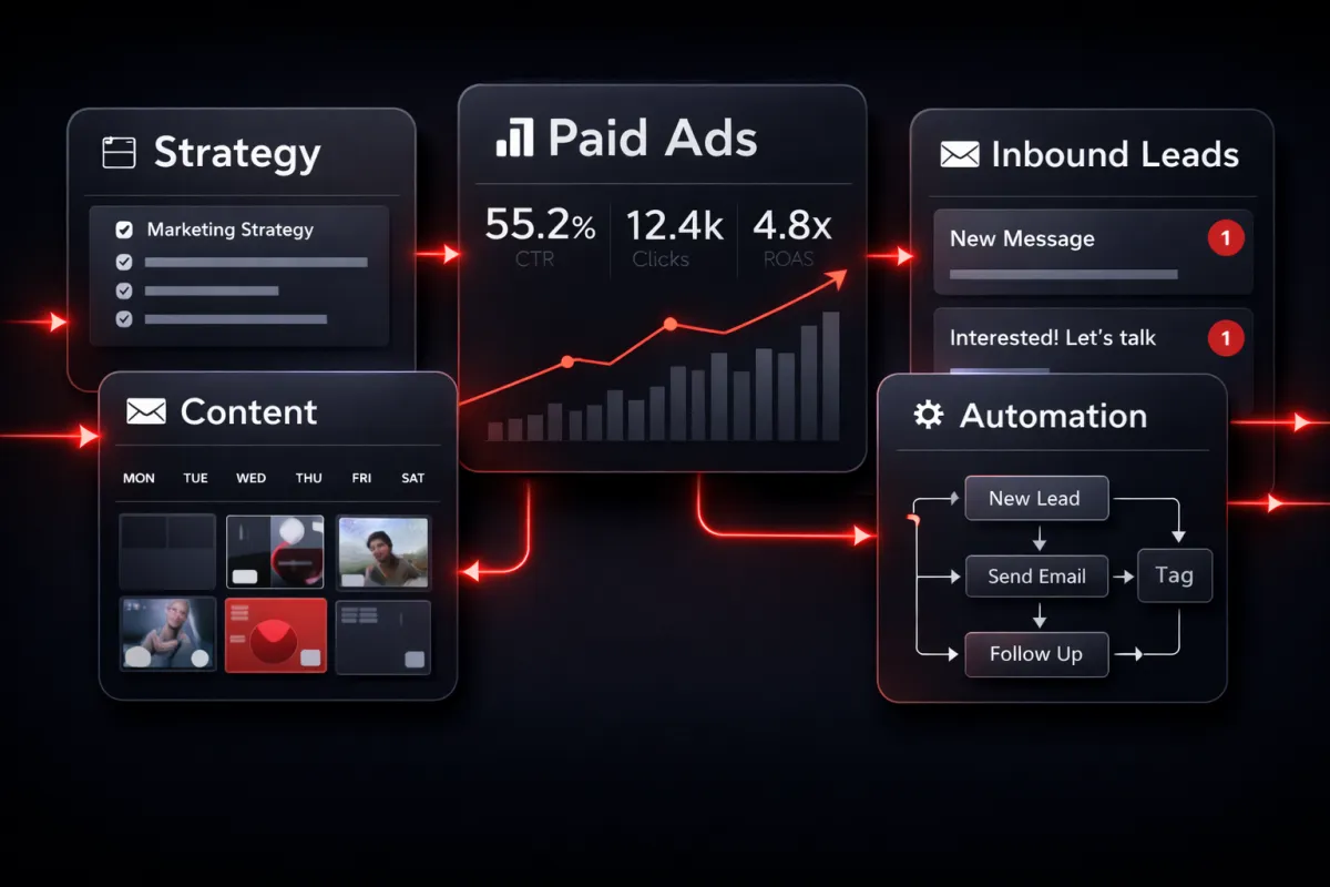We design and manage connected marketing systems combining content, Meta ads, funnels, and automation, so your revenue stops feeling random and starts feeling predictable.