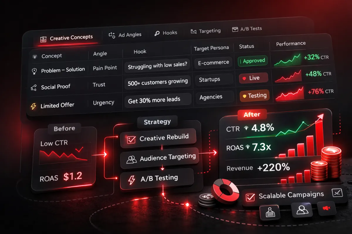 Testing, reporting, creative iteration, and conversion improvements—so performance becomes consistent.